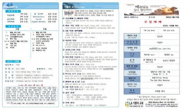 날짜: 2025.04.27 글쓴이 : JoyLife | 금주의 주보