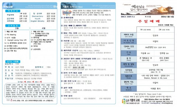 날짜: 2025.03.09 글쓴이 : JoyLife | 금주의 주보