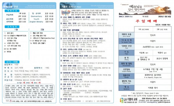 날짜: 2025.01.26 글쓴이 : JoyLife | 금주의 주보