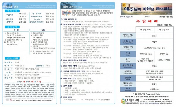 날짜: 2024.11.10 글쓴이 : JoyLife | 금주의 주보