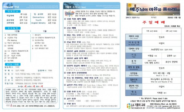 날짜: 2024.12.29 글쓴이 : JoyLife | 금주의 주보