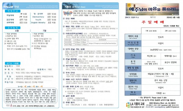날짜: 2024.06.09 글쓴이 : JoyLife | 금주의 주보