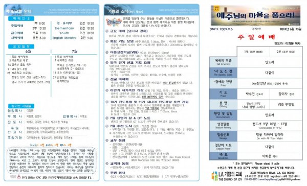 날짜: 2024.06.23 글쓴이 : JoyLife | 금주의 주보