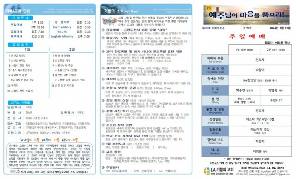 날짜: 2024.01.21 글쓴이 : JoyLife | 금주의 주보