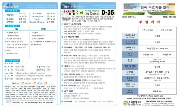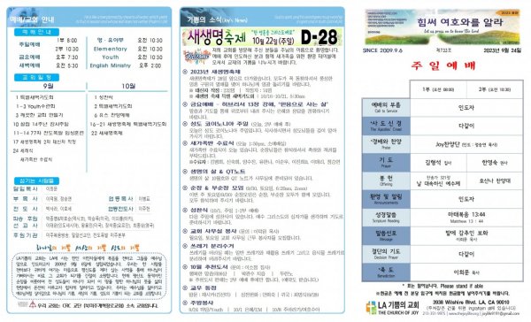 날짜: 2023.09.10 글쓴이 : JoyLife | 금주의 주보