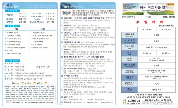 날짜: 2023.07.09 글쓴이 : JoyLife | 금주의 주보