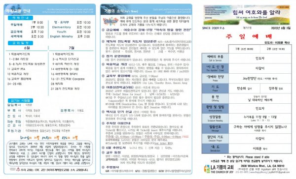 날짜: 2023.06.04 글쓴이 : JoyLife | 금주의 주보