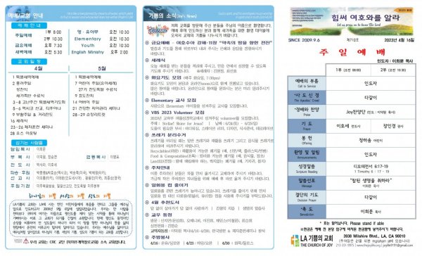 날짜: 2023.04.16 글쓴이 : JoyLife | 금주의 주보