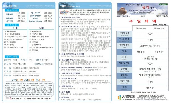 날짜: 2022.11.06 글쓴이 : JoyLife | 금주의 주보