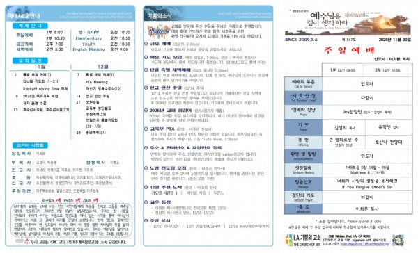 날짜: 2025.11.30 글쓴이 : JoyLife | 금주의 주보