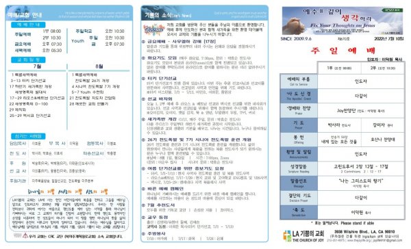 날짜: 2022.07.03 글쓴이 : LA기쁨의교회 | 금주의 주보
