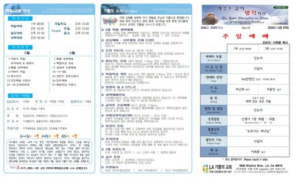 날짜: 2022.05.29 글쓴이 : JoyLife | 금주의 주보