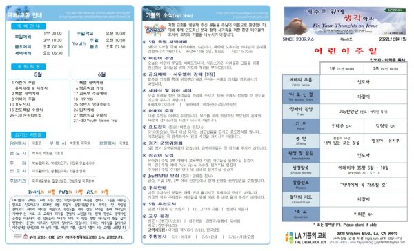 날짜: 2022.05.01 글쓴이 : JoyLife | 금주의 주보