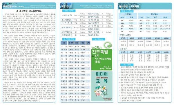 날짜: 2022.02.20 글쓴이 : JoyLife | 금주의 주보