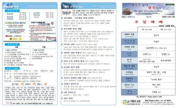 날짜: 2022.02.06 글쓴이 : JoyLife | 금주의 주보