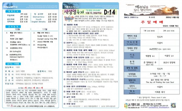 날짜: 2025.10.05 글쓴이 : JoyLife | 금주의 주보